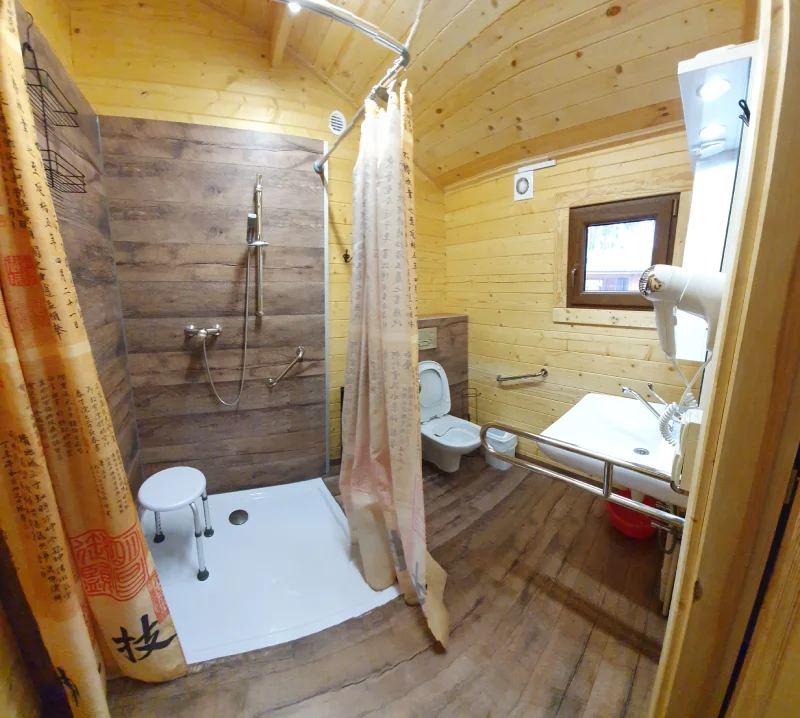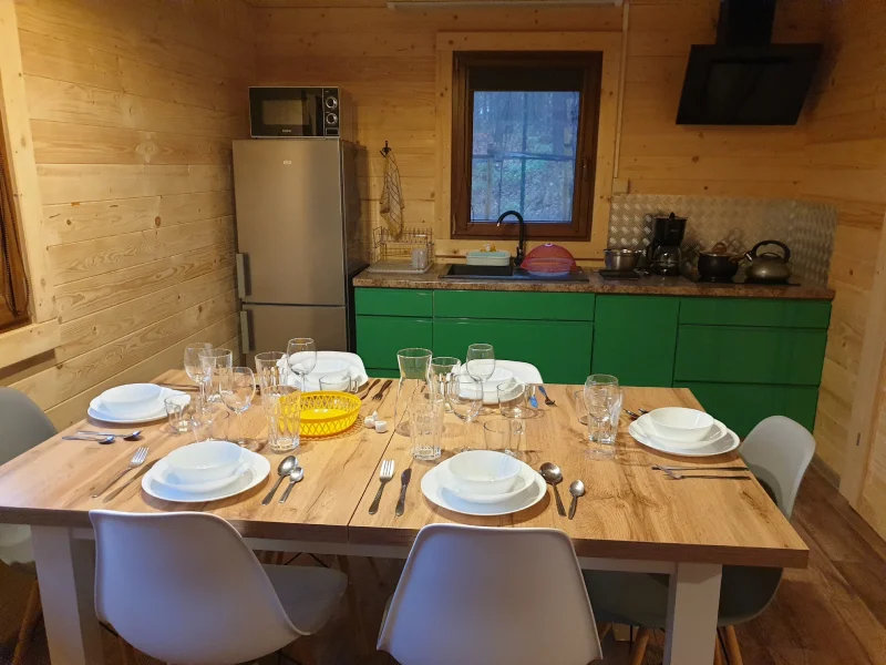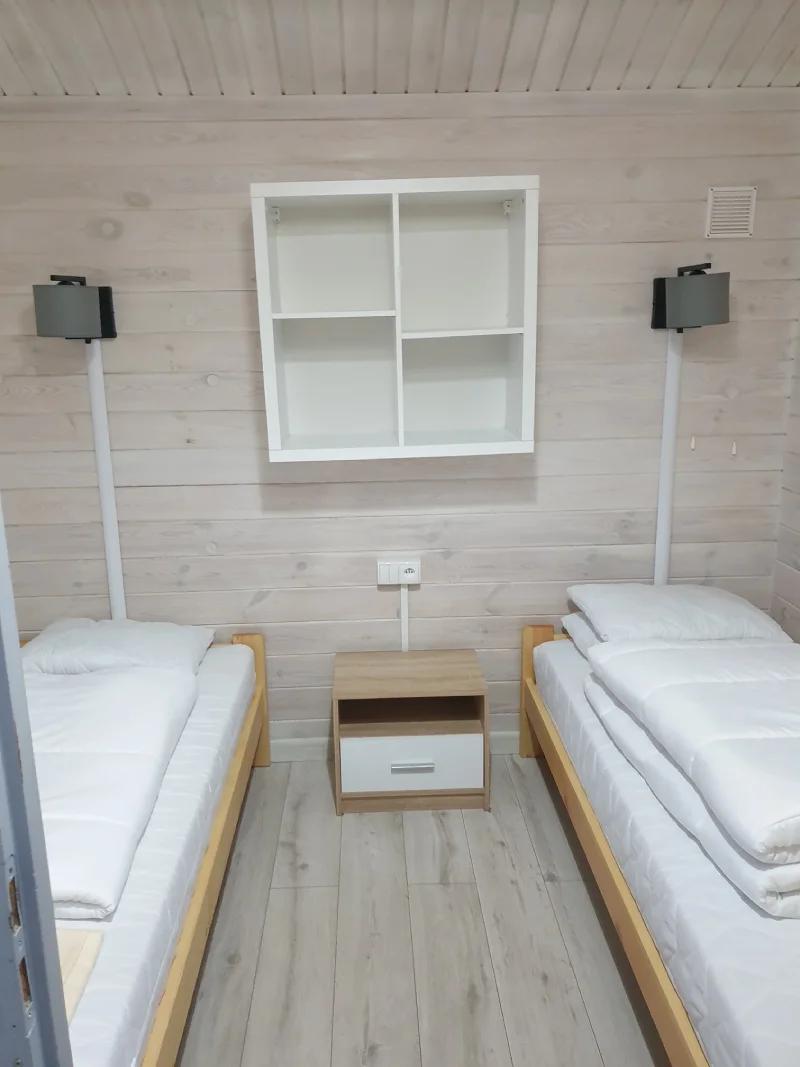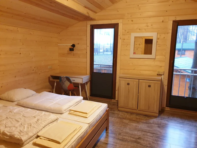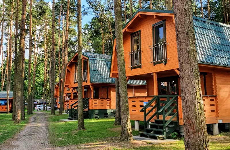 Keskuses on 130 mugavat puidust maja 2 kuni 8 inimesele, kokku umbes 500 kohta, terrasside, kööginurkade ja täis sanitaarseadmetega. Majad asuvad männimetsas, enamikust neist avaneb vaade järvele. Lisaks funktsionaalsele ja esteetilisele sisustusele on majades tunda meeldivat puidulõhna.